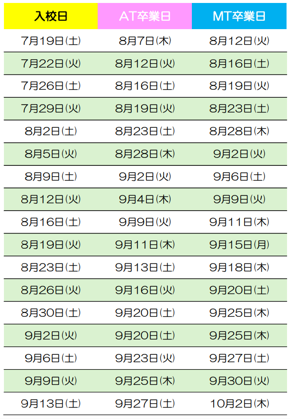 但し、入校日毎に定員がある為、完売したハイスピードプランの入校日・車種はご案内できません。
